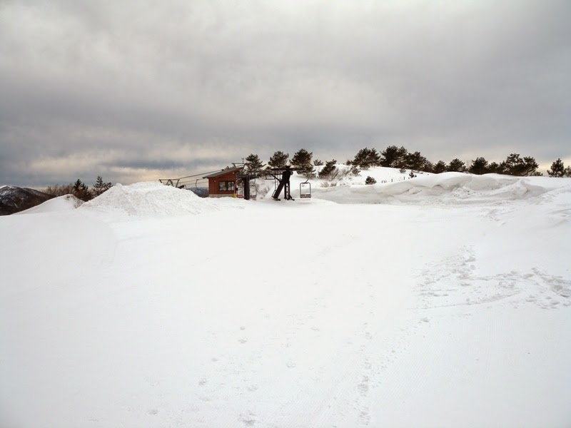 昨夜新雪が30cm近く降ったようだ。パウダーを喰おうとレイクサイドゲレンデ旧第2リフトの斜面へ登行をしてみたが、朝早いボーダーが入って色々なシュプールが出来ている。